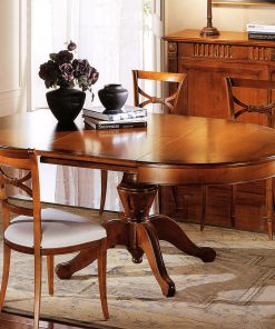 Круглый раскладной стол. Стол раскладывается с помощью 1-ой вставки на 60см. Возможны другие варианты отделки.