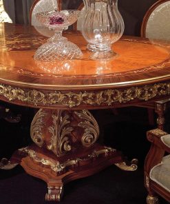 Овальный обеденный стол. Декорирован резными элементами. Возможны другие варианты отделки.