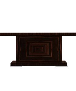 Обеденный стол с прямоугольной столешницей и массивной ножкой с металлическим основанием. Декорирован инкрустацией. Возможны другие варианты отделки
