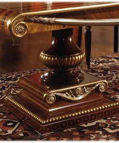 Прямоугольный обеденный стол с выдвижными боковыми панелями. Декорирован резными элементами. Структура- ясень, возможны другие варианты отделки.