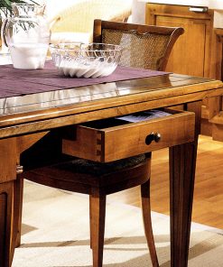 Квадратный раздвижной стол с выдвижным ящиком. Возможны варианты отделки в светлой и темной вишне.