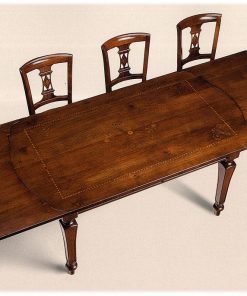 Прямоугольный раскладной стол с инкрустированной столещницей. Возможны другие варианты отделки и другие виды ножек.