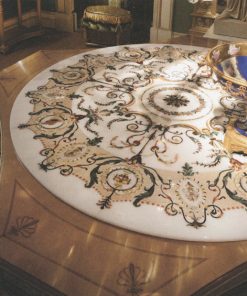 Стол с восьмиугольной столешницей и круглой мраморной вставкой. Декорирован инкрустацией и резьбой. Возможен вариант с круглой столешницей. Возможны другие варианты отделки