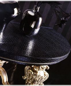 Круглый стол, столешница выполнена в отделке из кожи крокодила, декорирован резьбой ручной работы. Возможны другие варианты отделки.