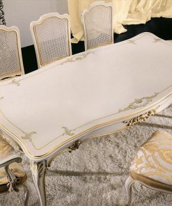 Прямоугольный обеденный стол. Декорирован резными элементами ручной работы. Возможны другие варианты отделки.