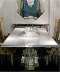 Прямоугольный обеденный стол, колонный выполнены из муранского стекла. Возможны другие варианты отделки.