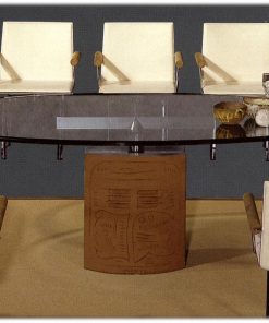 Стол обеденный, столешница стекло. База декорирована венецианской штукатуркой. Возможны другие варианты декора.