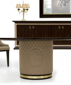 Круглый стол с обитым основанием. Возможны другие варианты отделки и обивки.