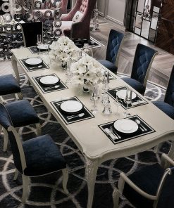 Прямоугольный раздвижной стол. Декорирован резьбой. Возможны другие варианты отделки.