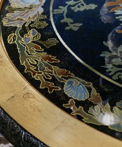 Круглый стол. Основание декорировано резьбой, столешница украшена инкрустацией и росписью. Возможны другие варианты отделки.