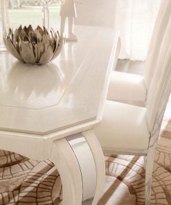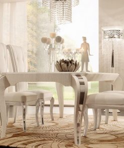 Прямоугольный обеденный стол, выполнен в отделке из кожи. Возможны другие варианты обивки и отделки.