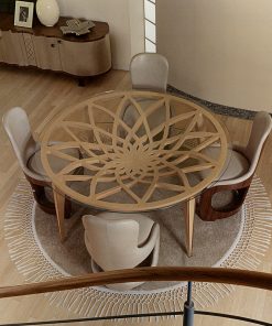 Круглый обеденный стол со стеклянной столешницей. Возможны другие варианты отделки.