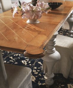 Прямуогольный раскладной стол с фигурными ножками. Стол раскладывается с помощью 2-х вставок по 60см. Возможны другие варианты отделки.