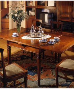 Квадратный раскладной стол с 1-м ящиком. Стол раскладывается с помощью 2-х вставок по 45 см. Возможны другие варианты отделки.