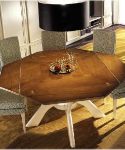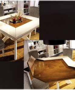 Квадратный раскладной стол. Стол раскладывается с помощью 4-х откидных элементов. Возможны другие варианты отделки.