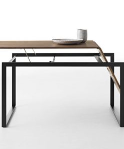 Обеденный раздвижной стол на металлической основе с прямоугольной столешницей. Возможны другие варианты отделки