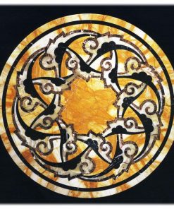 Круглый обеденный стол. Столешница — мрамор. Декорирован резными элементами