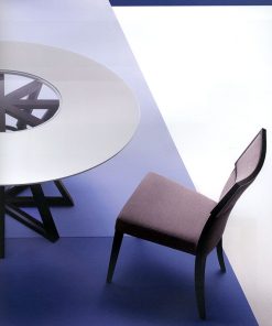 Круглый обеденный стол. Столешнице выполнена со стеклянной вставкой. Возможны другие варианты отделки.