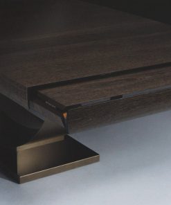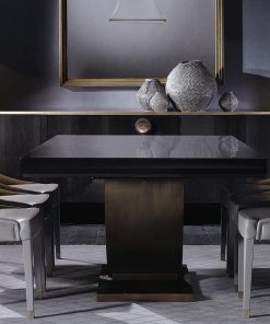 Обеденный раздвижной стол с прямоугольной столешницей и фигурным металлическим основанием. Возможен вариант с фиксированной столешницей. Возможны другие варианты отделки.