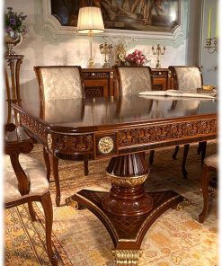 Прямоугольный раскладной стол (стол раскладывается с помощью 2-х вставок), декорирован резьбой. Возможны другие варианты отделки