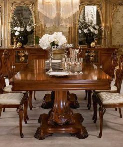 Прямоугольный обеденный стол. Декорирован резными элементами. Возможны другие варианты отделки.
