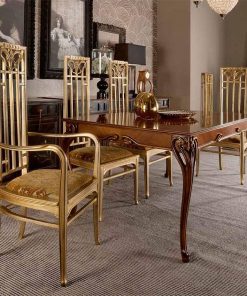 Прямоугольный раскладной стол. Декорирован резными элементами. Возможны другие варианты отделки.