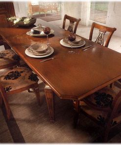 Прямоугольный раскладной стол. Декорирован резными элементами. Возможны другие варианты отделки.