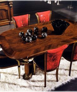Прямоугольный обеденный стол, декорирован резными элементами. Возможны другие варианты отделки.