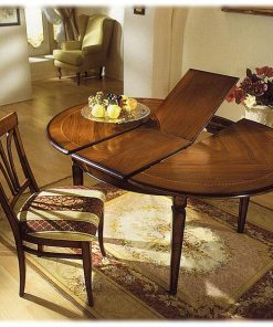 Круглый раскладной стол, стол удлиняется на 40 см. Возможны другие варианты отделки.