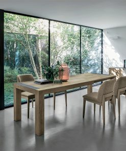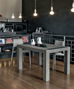 Раздвижной прямоугольный стол с металлическими вставками. Возможны другие варианты отделки.