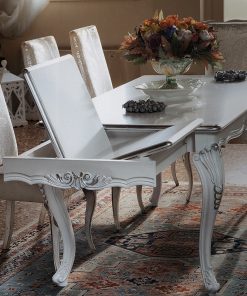Прямоугольный раздвижной стол. Украшен резьбой. Возможны другие варианты отделки.