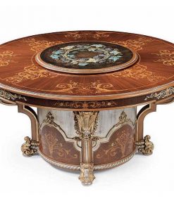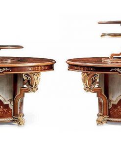 Обеденный стол с поднимающейся подставкой в центре стола. Декорирован резными элементами ручной работы. Возможны другие варианты отделки.