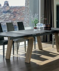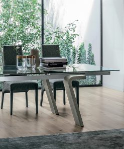 Раздвижной прямоугольный стол со стеклянной столешницей. Возможен вариант с керамической столешницей и другие варианты отделки.