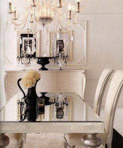 Прямоугольный обеденный стол, столешница выполнена из стекла. Возможны другие варианты отделки. Возможен вариант раскладного стола.