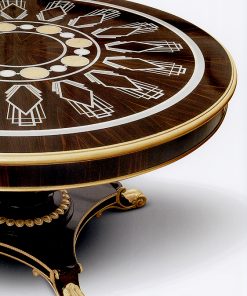 Круглый обеденный стол. Декорирован инкрустацией и резьбой. Возможны другие варианты отделки.