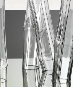 Обеденный стол с овальной деревянной столешницей и зеркальным основанием. Декорирован опорами из муранского стекла. Возможен вариант столешницы из крашенного стекла. Возможны другие варианты отделки