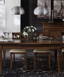 Раздвижной прямоугольный стол. Украшен инкрустацией.