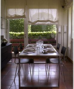 Прямоугольный обеденный стол, столешница выполнена из стекла. Возможны другие варианты отделки.