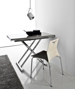 Стол-трансформер с прямоугольной складной столешницей и металлическим основанием. Регулируется по высоте. Возможны другие варианты отделки