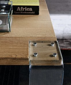 Прямоугольный обеденный стол со стеклянными ножками. Возможны другие варианты отделки.