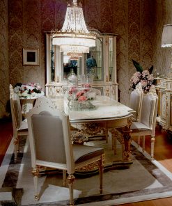 Обеденный стол. Столешница со стеклянной вставкой. Декорирован росписью и резьбой. Возможны другие варианты отделки.
