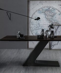 Прямоугольный стол с металлическим основанием и деревянной столешницей. Возможен вариант со стеклянной или керамической столешницей. Возможны другие варианты отделки.
