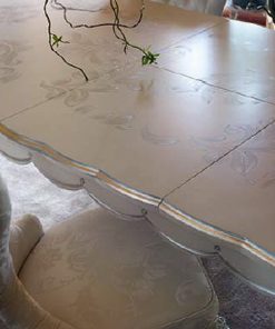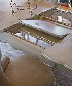 Прямоугольный раздвижной стол. Украшен резьбой и росписью. Возможны другие варианты отделки.