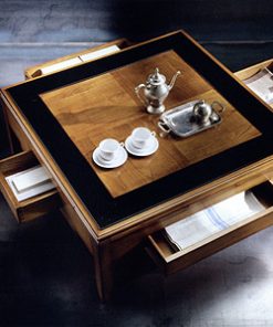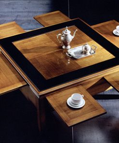 Чайный столик с четырьмя выдвижными ящиками и шестью выдвижными полками, черная лакированная деревянная вставка. Возможны другие варианты отделки.