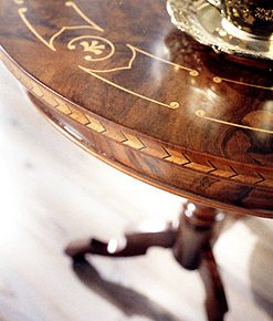 Круглый столик, украшенный инкрустацией. Возможны другие варианты отделки.