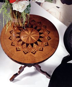 Круглый столик, украшенный резьбой и инкрустацией в форме звезды. Возможны другие варианты отделки.