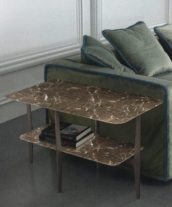 Столик с металлической основой, прямоугольной мраморной столешницей и полкой. Возможен вариант с деревянной столешницей. Возможны другие варианты отделки