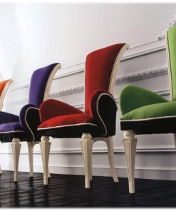Мягкий стул с подлокотниками и декоративными ножками. Обивка — ткань. Возможны различные цвета
