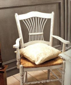 Стул с подлокотниками, жесткая спинка и плетеное сидение. Возможны другие варианты отделки.