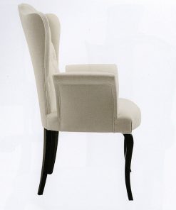 Стул с обитыми подлокотниками и сидением. Спинка обита в технике капитоне. Возможны другие варианты отделки и обивки, в том числе в ткани клиента.